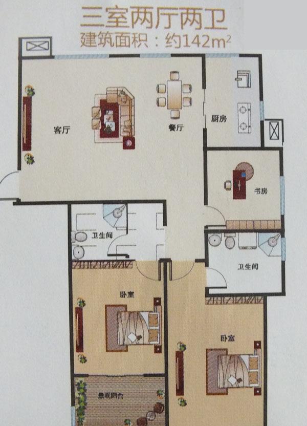3室2厅2卫-3室2厅2卫142㎡