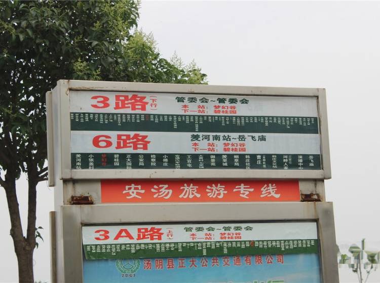 司法局(公交站):汤阴7路;汤阴7路(中华路小学);光明社区(公交站):汤阴7路;汤阴7路(中华路小学);检察院(公交站):汤阴3A路(上行);汤阴3路外环;汤阴6路;公安局(公交站):汤阴3A路(上行);汤阴3路外环;汤阴6路;汤阴7路;汤阴7路(中华路小学);小付庄(公交站):汤阴7路;汤阴7路(中华路小学);小傅庄(公交站):汤阴3A路(上行);汤阴3路外环;汤阴6路;西兰村(公交站):汤阴3A路(上行);汤阴3路外环;汤阴7路;汤阴7路(中华路小学);正大国际(公交站):汤阴3A路(上行);汤阴3路外环;汤阴6路;汤阴8路;汤阴8路(安运物流始发);梦幻谷(公交站):汤阴2路;汤阴3A路(上行);汤阴3路外环;汤阴6路;安通汽车检测站(公交站):汤阴3A路(上行);汤阴3路外环;汤阴6路;汤阴7路;汤阴7路(中华路小学);