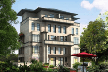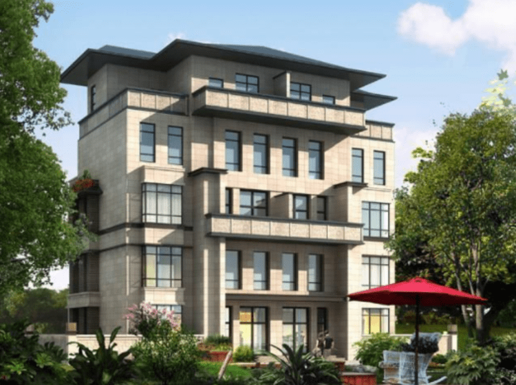 休闲养生墅院,占地46.6亩,容积率1.24,总建筑面积62702㎡,规划建设养生别墅。共28栋楼,112户,面积为别为197平方米和227平方米。“九里庭院”养生别墅图标中国汉唐式建筑造型,古韵十足。