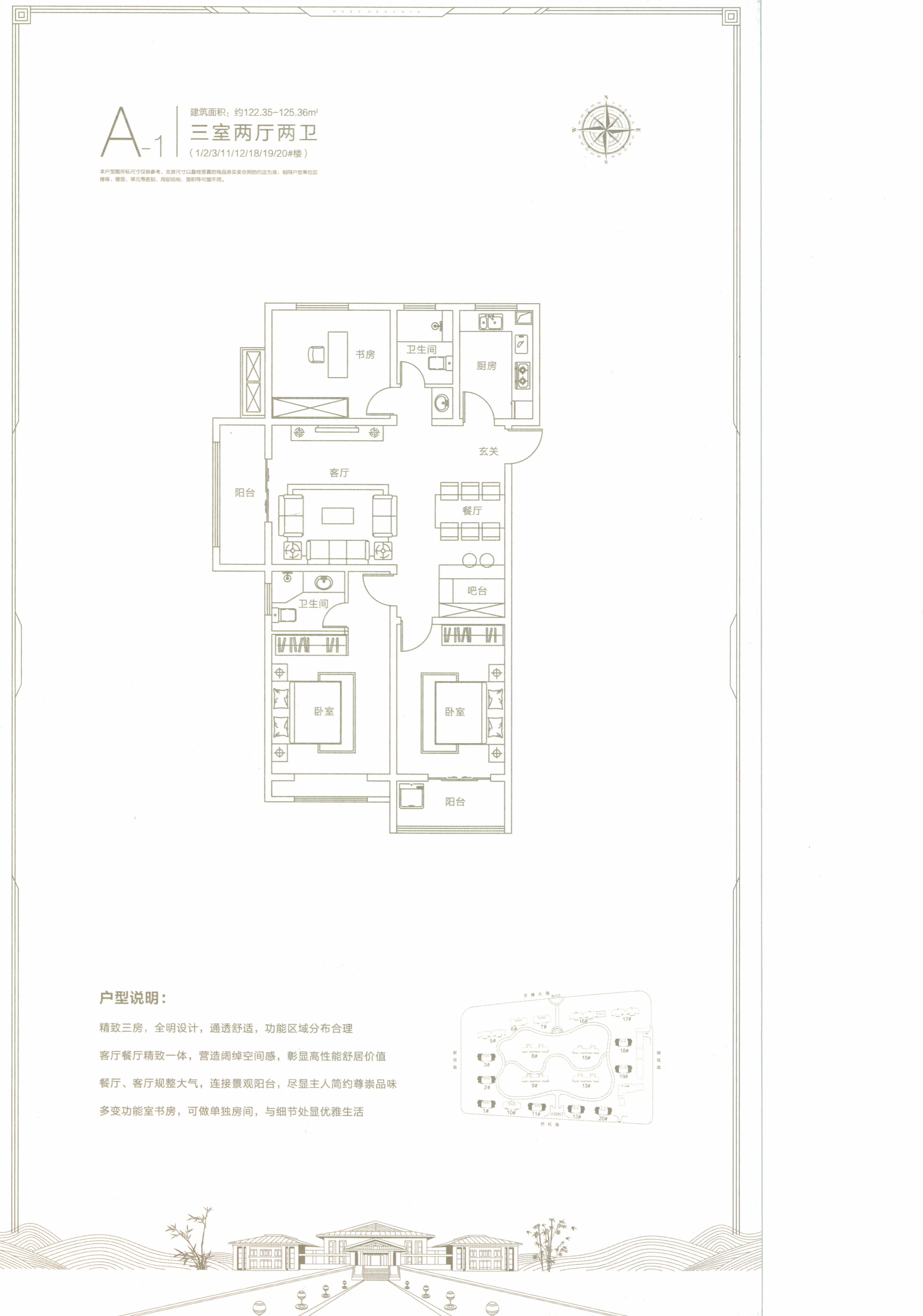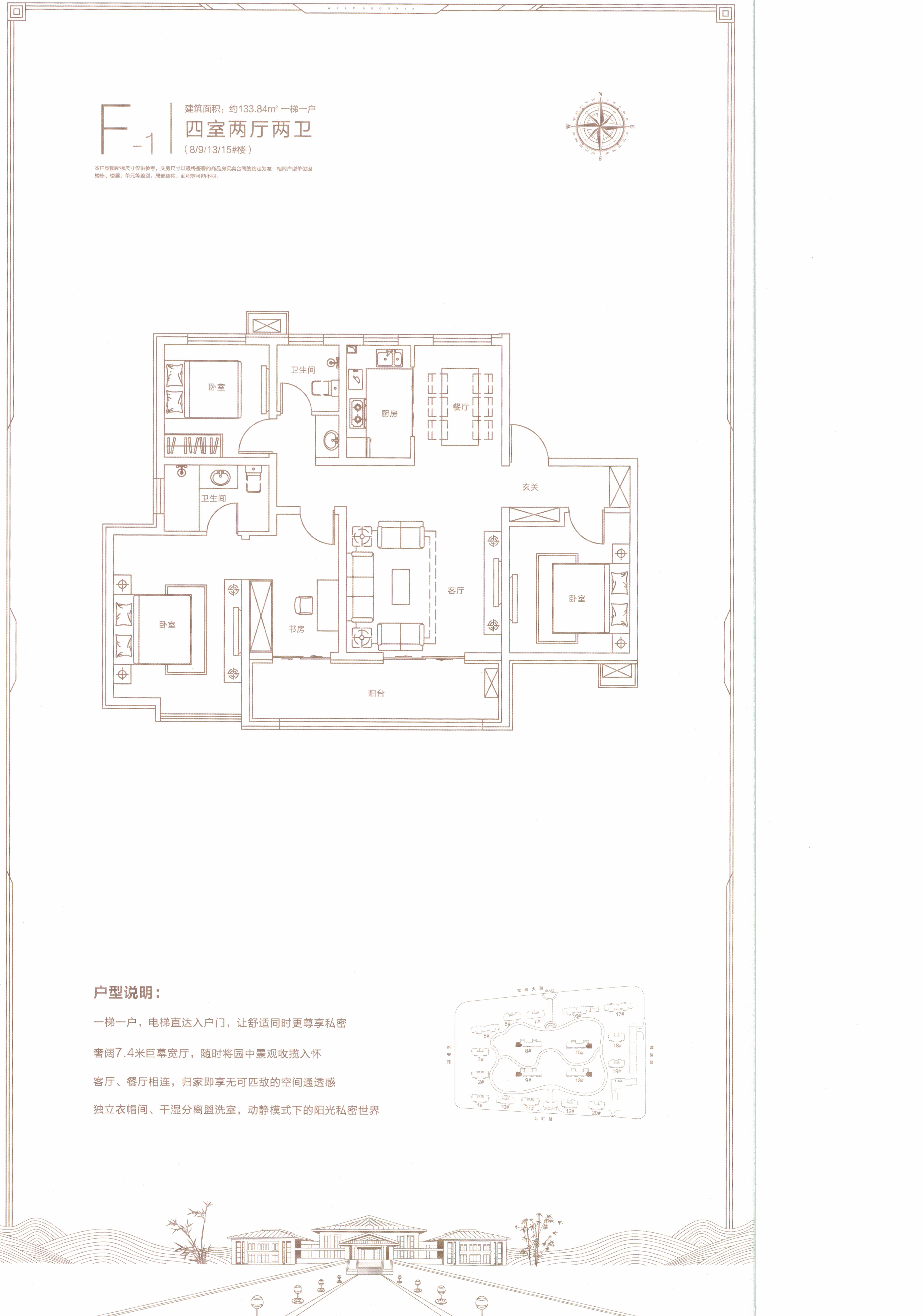 上叠院(四室四卫),面积:229㎡,主卧带衣帽间、卫生间、北向阳台,开间5.1米的挑空客厅,送顶层阁楼(南北双露台)80平米,户数56个。