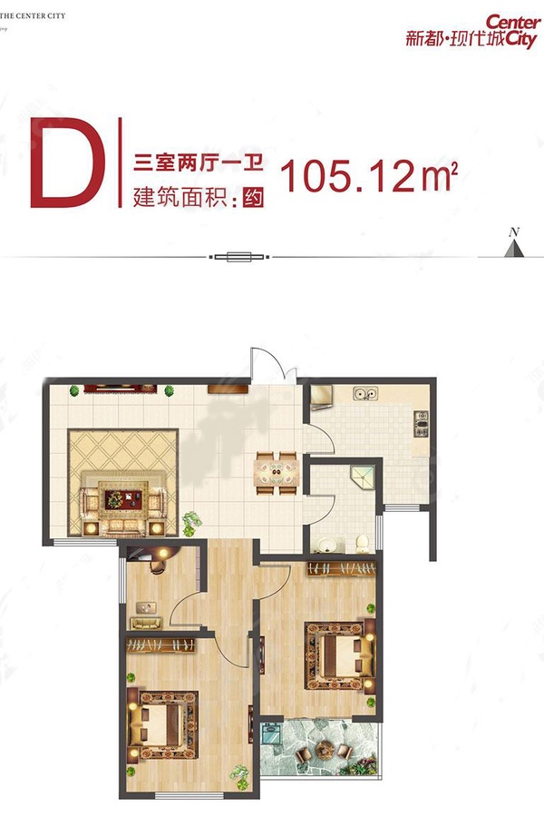 74万/套 建面105.12m²