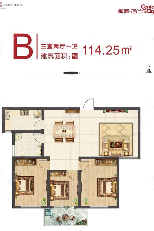 3室2厅1卫-B