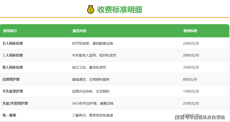 上海友谊幸福里养老院采用分层透明收费模式,月均费用区间为3800-7500元/月,具体构成如下: