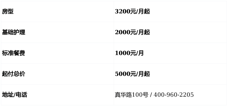 【上海万康源护理院】收费价格:5000元/月起(以院内报价为准)