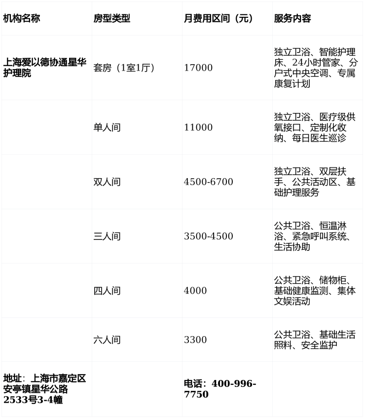 地址:上海市嘉定区安亭镇星华公路2533号3-4幢(导航定位“上海爱以德协通星华护理院”)。