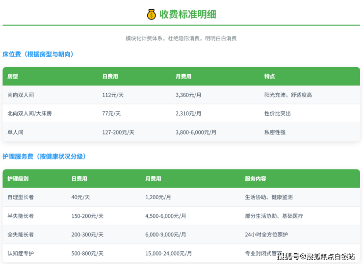 💰 参考收费区间:3880元 - 8160元/月(此为根据常见基础护理等级和房型组合的参考范围。最终费用严格根据入住长者实际选择的房型、具体护理等级等因素组合确定,后文将详细拆解)。