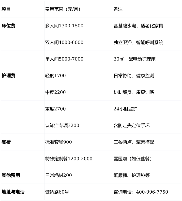 价格说明:以上费用为参考价,实际收费需结合长者身体评估结果,拨打400-996-7750可获取精准报价。