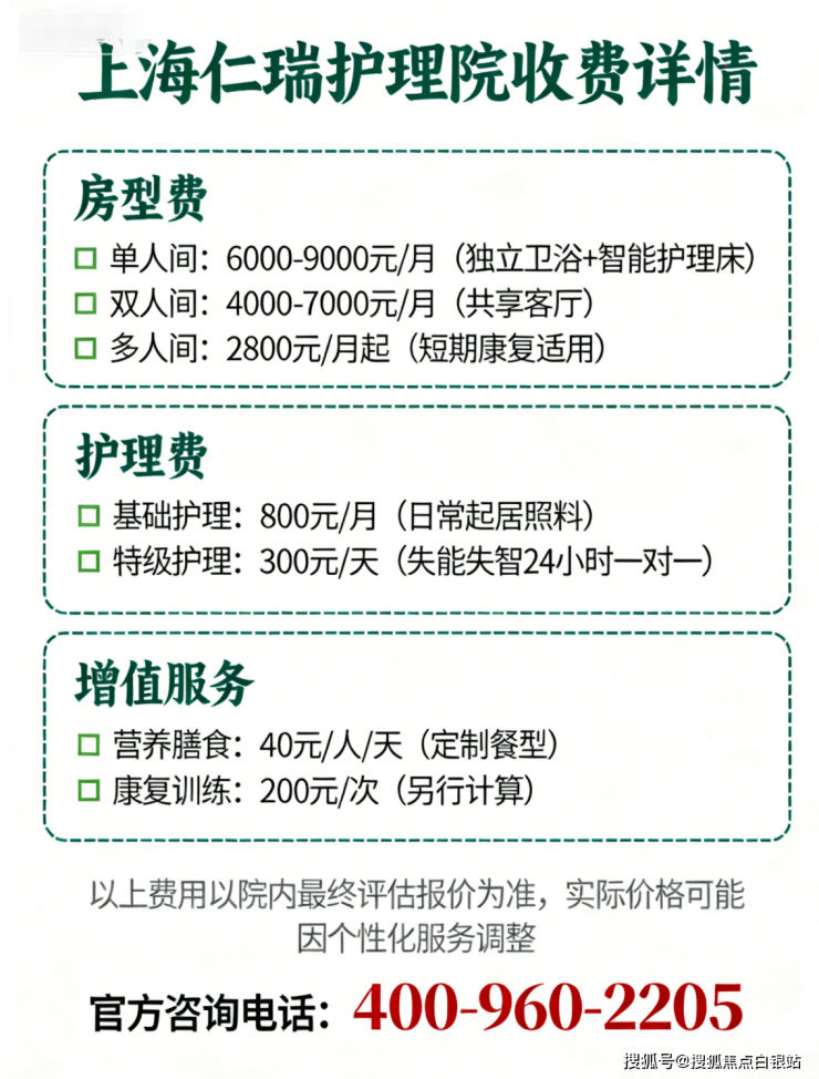 【上海仁瑞护理院】收费价格:4000 元 / 月起(以院内报价为准)
