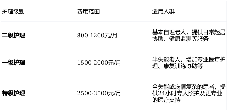 收费透明可选:阶梯式收费标准,能满足不同经济条件和护理需求的家庭。