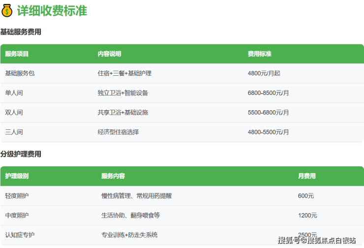 双人间:1800-2400元/月/床,配备独立储物柜与适老化桌椅