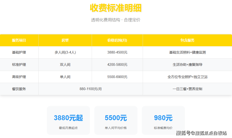 重要提示:以上为参考价格区间。“3880元起”通常对应标准多人间加基础自理型护理的组合。要获取与您家情况完全匹配的精准个性化报价,必需的方式是:携带长者近期的健康资料,拨打400-855-0290预约一次专业的现场健康评估。