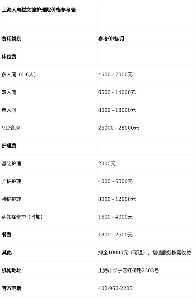 💰 上海人寿堂文锦护理院收费:透明分级,按需匹配