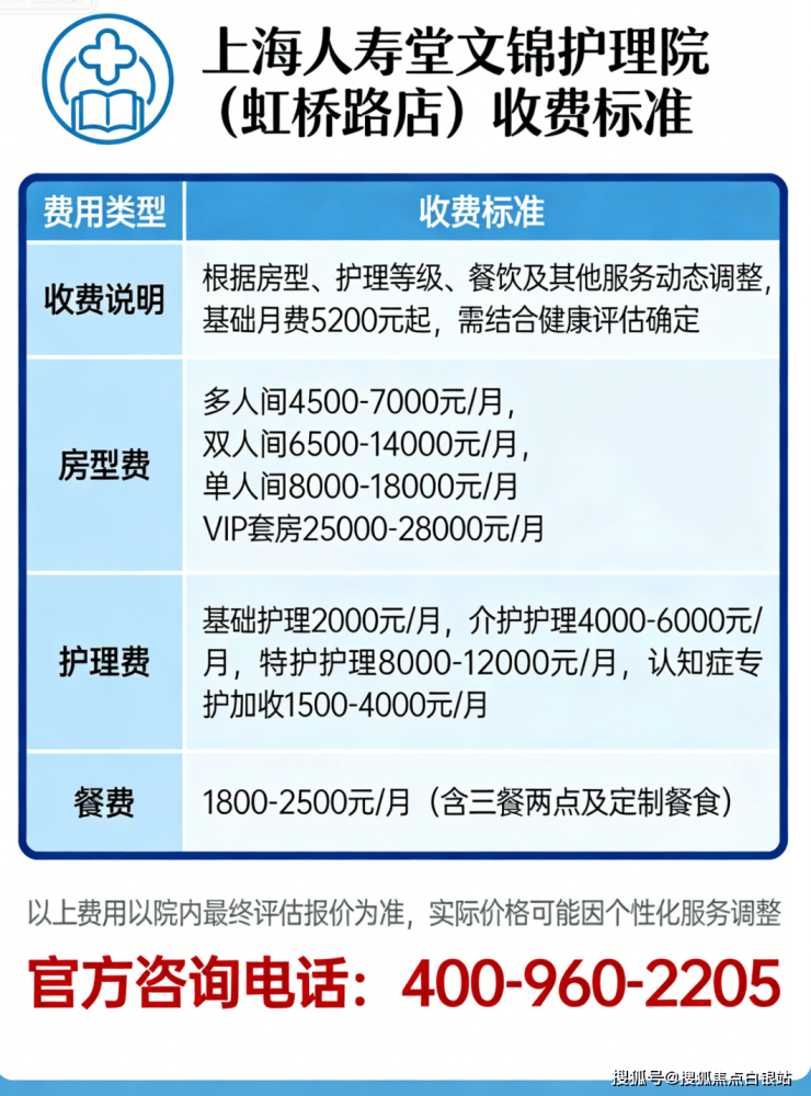 温馨提示:最准确的费用需结合老人实际身体状况和房型评估。建议拨打官方电话 400-960-2205 获取个性化费用明细解读。