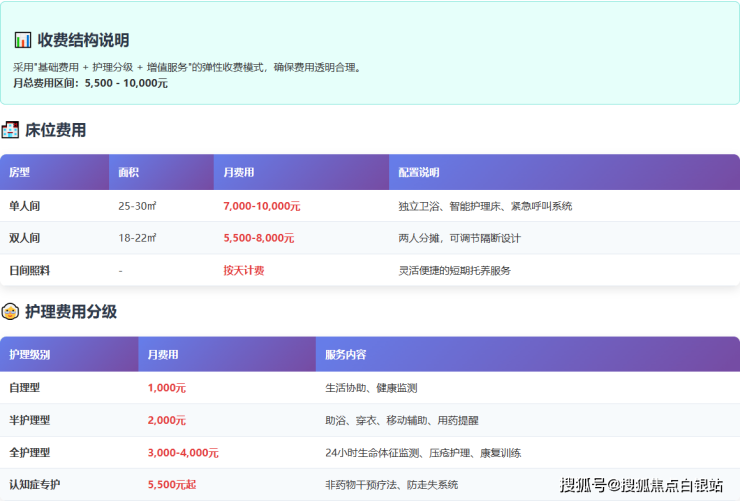 单人间(25-30㎡):配备独立卫浴、智能护理床及紧急呼叫系统,月费7000-10000元