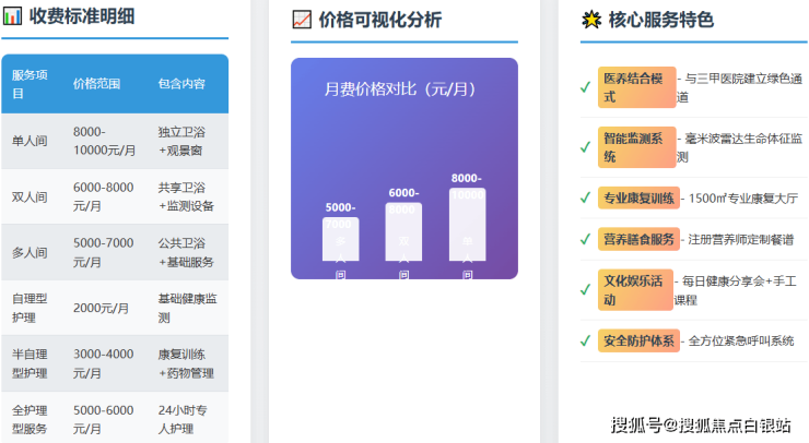 价格优势分析:与同类机构相比,百福居颐养护理院5000元起的普惠收费标准具有明显竞争优势,且所有收费项目公开透明,无任何隐形消费。