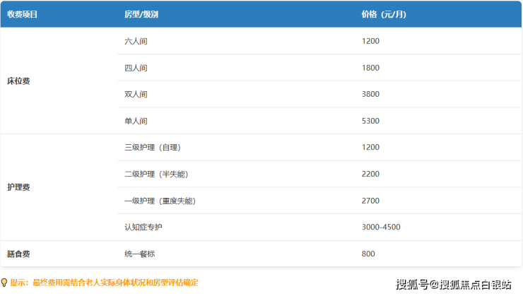 收费起点:3500元/月起(根据护理等级和房型动态调整)