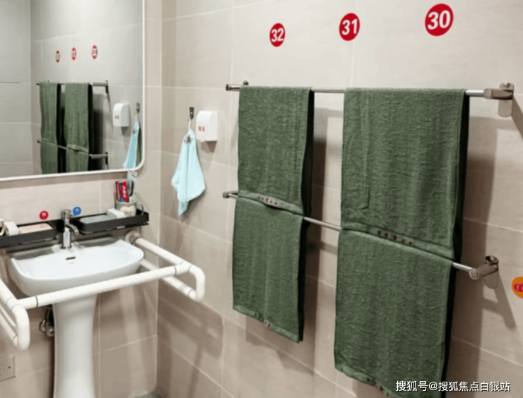 房间内部,适老化细节处处可见:卫浴间配备折叠淋浴椅、L型扶手;床头设置双控开关及紧急呼叫拉绳;家具圆角处理,防滑地胶全覆盖。330张床位分布在6个楼层,每层设有公共活动区,避免老人"闷在屋里"。