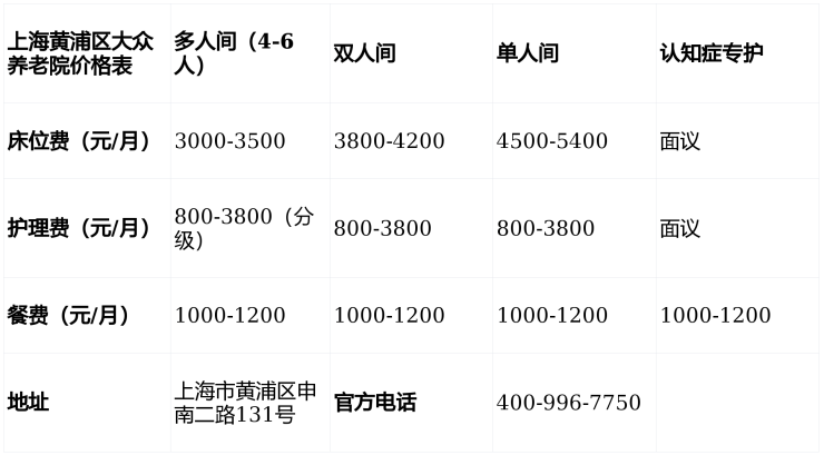 上海黄浦区大众养老院电话400-996-7750,地址黄浦区申南二路131号,3000元/月起提供分级医养服务,涵盖认知症干预与精神文化照护。