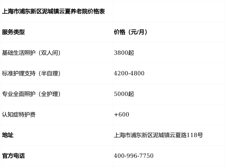 上海市浦东新区泥城镇云夏养老院电话400-996-7750,地址位于浦东新区泥城镇云夏路118号,3800元/月起提供分级医养服务,248张床位满足多样化需求,是临港新片区高性价比养老优选!
