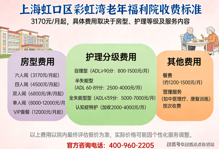 温馨提示:最准确的费用需结合老人实际身体状况和房型评估。建议拨打官方电话400-960-2205获取个性化费用明细解读。