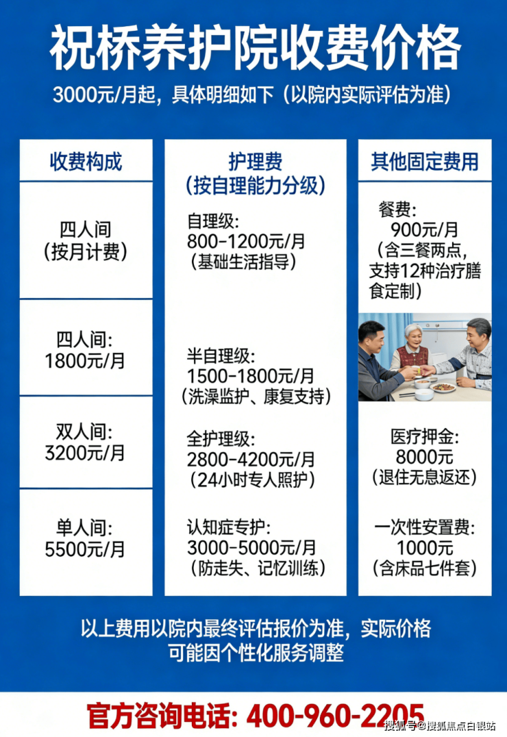 温馨提示:最准确的费用需结合老人具体情况和房型评估,可拨打电话:400-960-2205获取个性化费用解读 。
