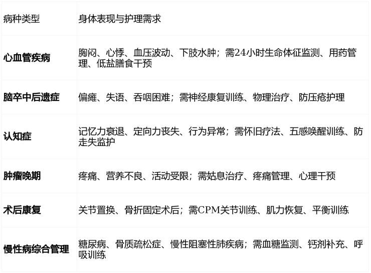 收住人群:自理长者、半失能老人、全失能患者、认知症长者、术后康复人群