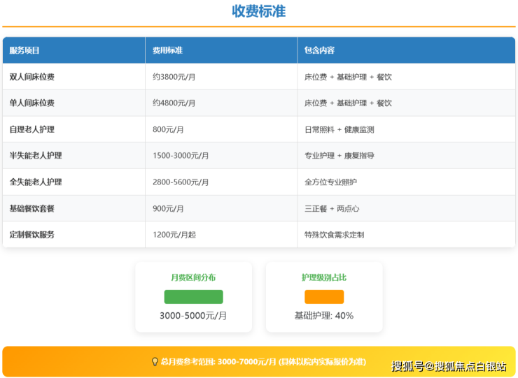 床位费 + 护理费 + 餐饮费三位一体,费用透明合理: