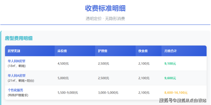 上海研精颐养院采用分层定价模式,收费透明无隐形消费: