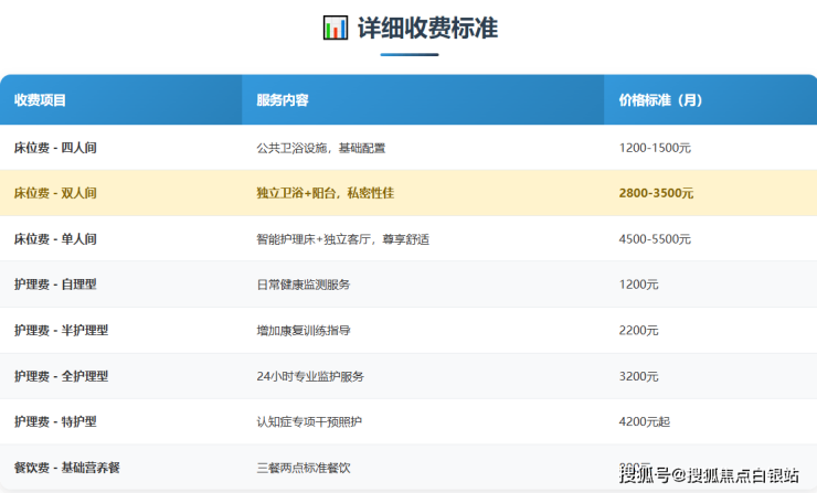价格范围:3200元/月起,根据房型和护理等级差异化定价