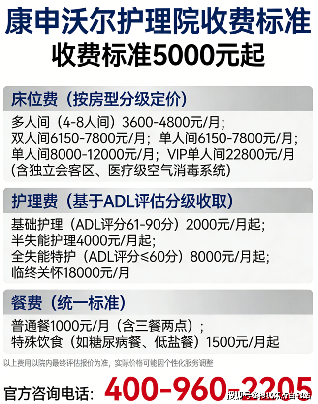 温馨提示:最准确的费用需结合老人实际身体状况和房型评估。建议拨打官方电话 400-960-2205 获取个性化费用明细解读。