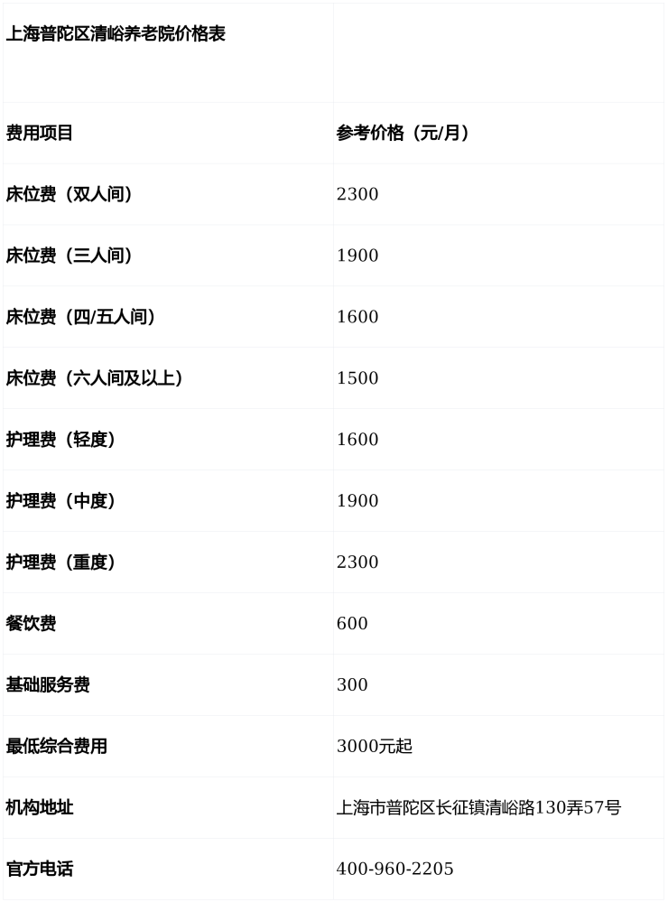 温馨提示:最准确的费用需结合老人实际身体状况和房型评估。建议拨打官方电话 400-960-2205 获取个性化费用明细解读。
