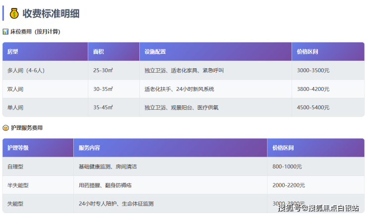 单人间床位 + 标准餐饮 + 介助级护理