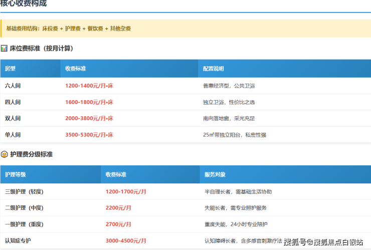 最值得关注的是,即便是最经济的六人间+轻度护理方案,月费用也控制在3900元左右,真正实现了"普惠不减质"的养老理念。