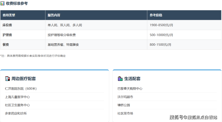 上海塘桥养护院采用业内通行的**"床位费 + 护理费 + 餐费"模块化收费模式**,所有费用公开透明,无隐藏消费。以下是基于2026年信息的详细收费构成解析: