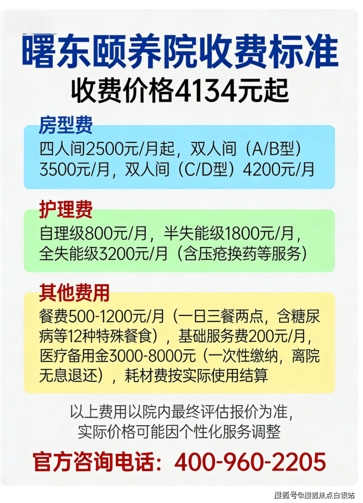二、曙东颐养院收费标准:透明分项计价,4134元/月起