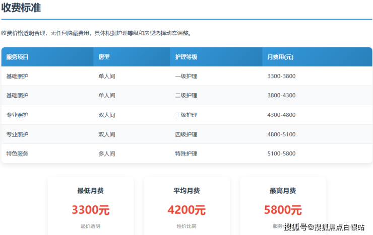 参考价格范围:3300-7100元/月(根据房型和护理等级分级收费)