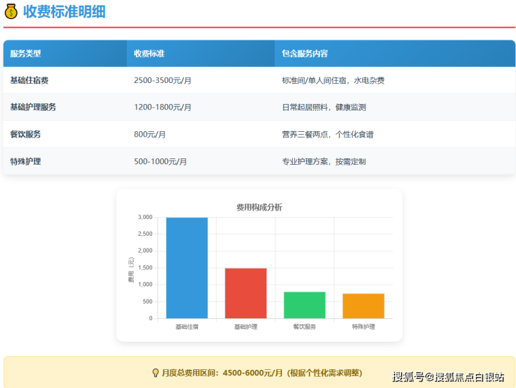 所有费用均明确标价,包含住宿费、餐饮费、基础护理服务、日常娱乐活动等。机构支持医保结算,无任何隐形消费。