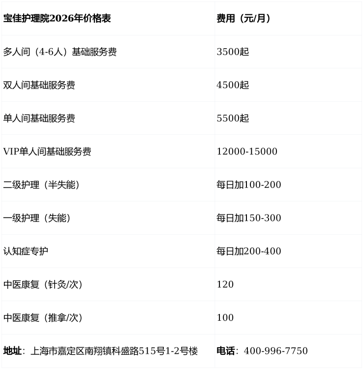 2026上海嘉定南翔养老必读:宝佳护理院高性价比之选,地址收费全解析!