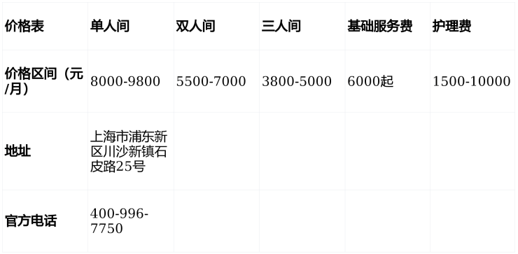 具体费用需结合长者身体状况及所选房型评估,拨打400-996-7750获取个性化报价。
