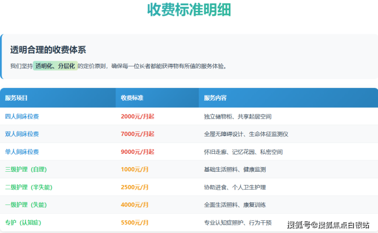 收费标准:4880元/月起,叠加长护险补贴后实际支出可低至2880元/月