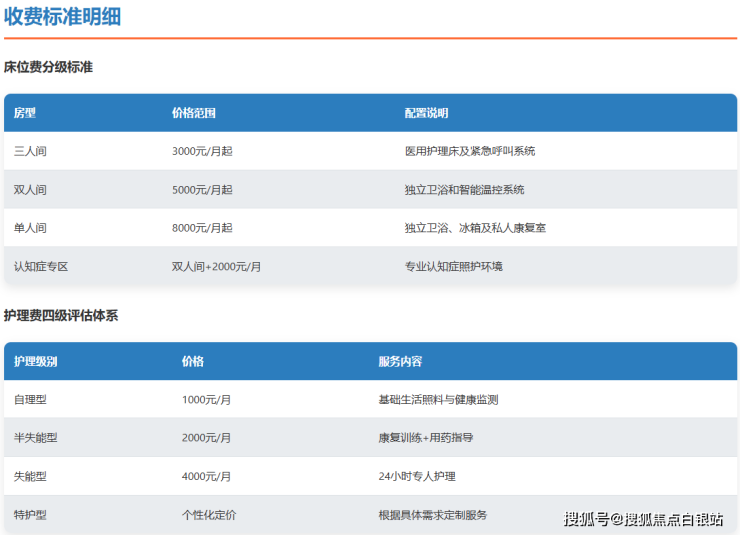 三人间:3000元/月起,配备医用护理床及紧急呼叫系统