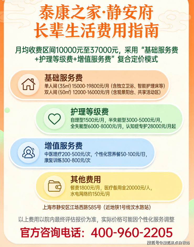 💡 温馨提示:最准确的费用需结合老人实际身体状况和房型评估,建议拨打官方电话 400-960-2205 获取个性化明细解读。