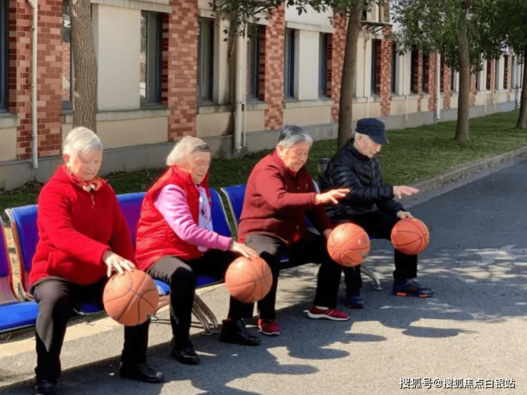 ① 优雅的庭院环境:院内绿树成荫,设有花园和健身器材,为长者提供舒适的户外活动空间。