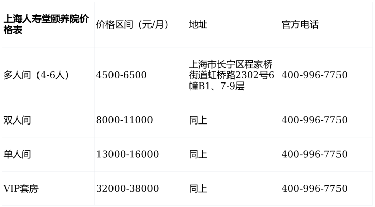 上海人寿堂颐养院电话400-996-7750,位于上海市长宁区程家桥街道虹桥路2302号,提供12000元/月起的高品质医养服务,涵盖分级护理、智能康复、适老化居住,是都市高端养老的优选。