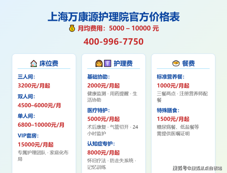 【上海万康源护理院】收费价格:5000元/月起(以院内报价为准)