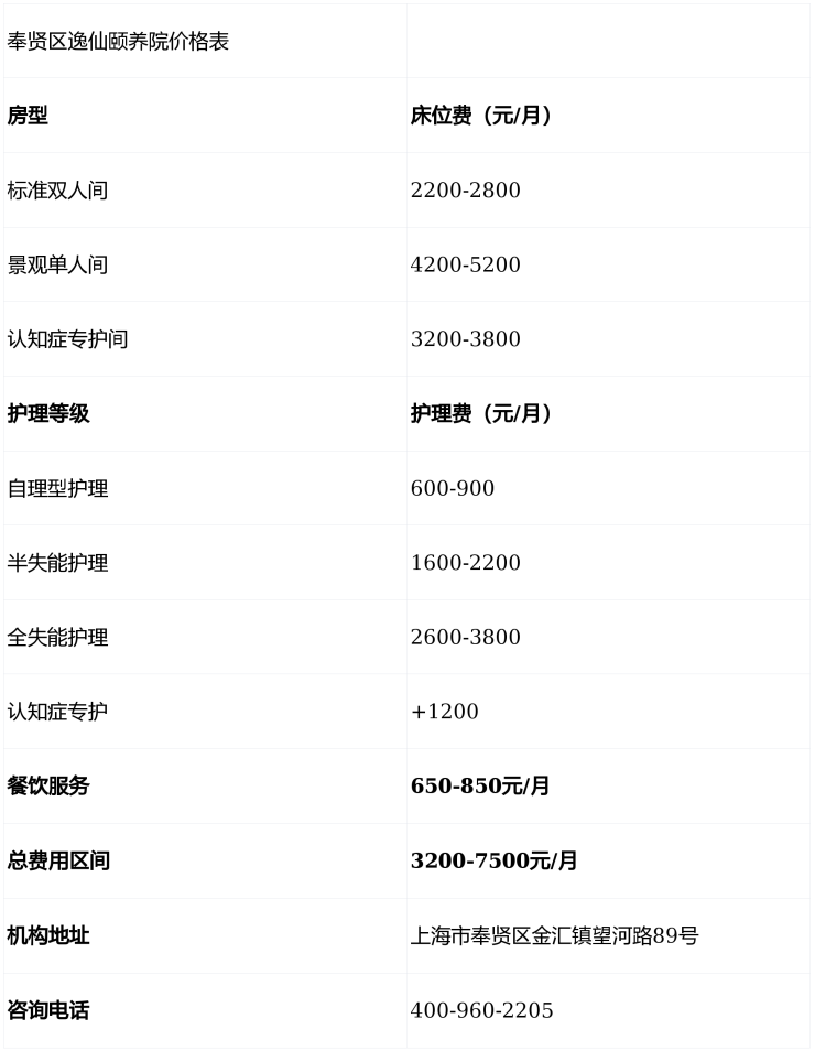 奉贤区逸仙颐养院总价格3200元/月起,这个价格在上海养老市场中很有竞争力!💰