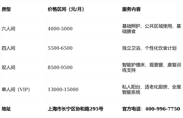 收费价格:4000元/月起,覆盖六人间至VIP套房,最高15000元/月