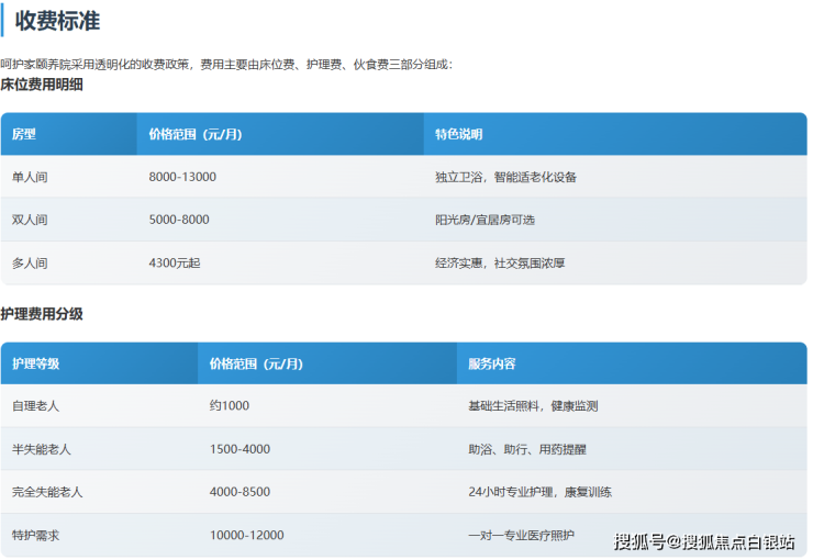 机构月费主要由床位费、护理费、伙食费等部分组成,整体区间在2500-8000元,具体按实际需求浮动: