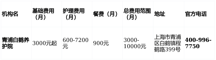 青浦白鹤养护院电话:400-996-7750,地址:上海市青浦区白鹤镇程鹤路399号,3000元/月起收住60岁以上自理、半失能、全失能及认知障碍长者,432张床位灵活选择,提供全周期医养照护与智慧化服务,欢迎致电咨询或预约参观!