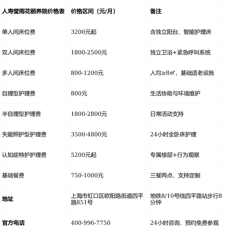 2026上海虹口区养老必读:人寿堂雨花颐养院高性价比之选,地址收费全解析!